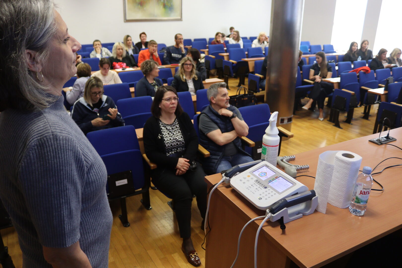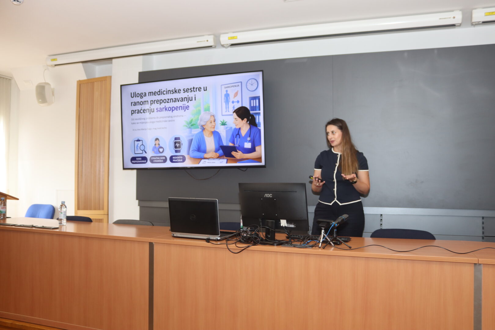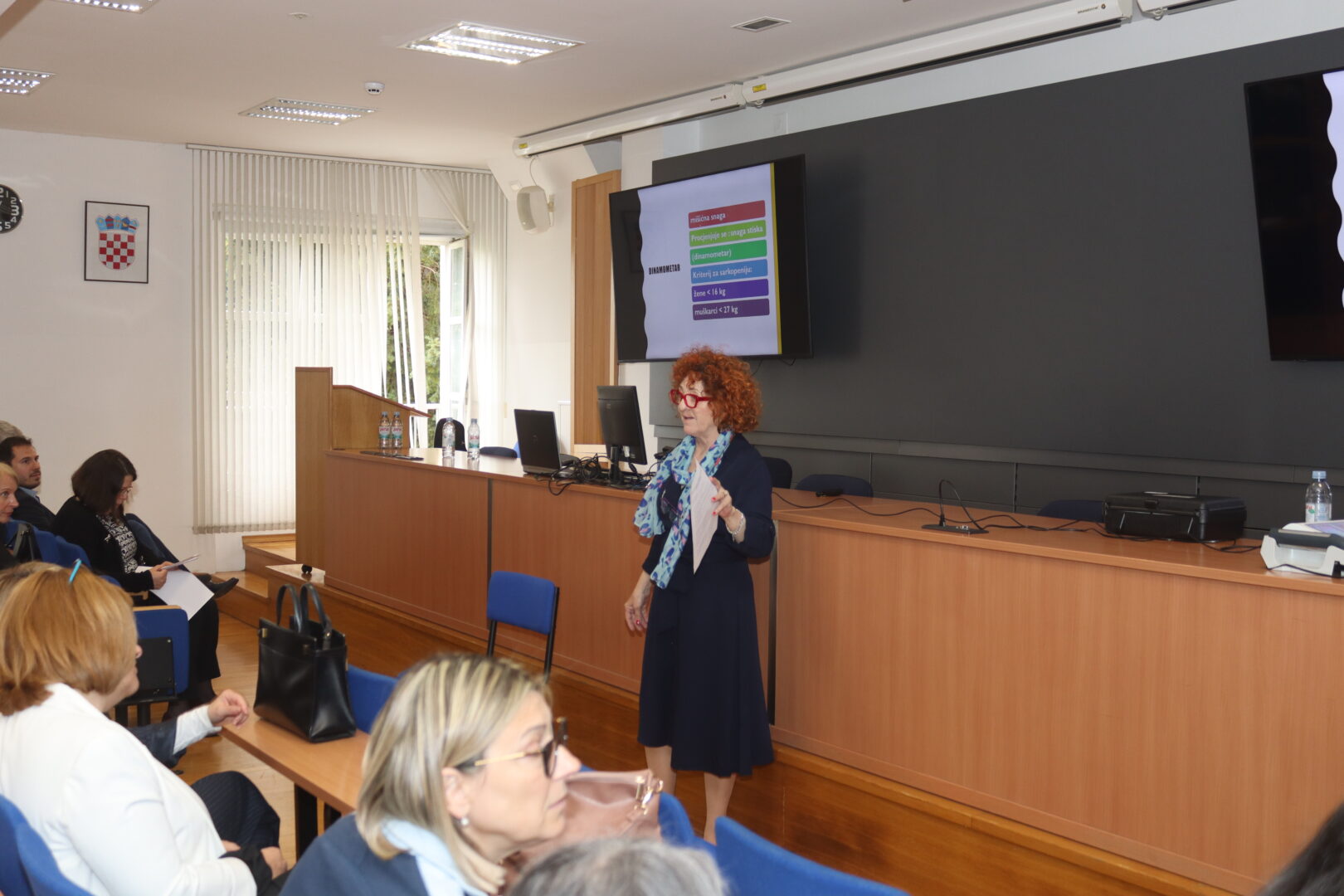 Kroz stručna predavanja i rasprave sudionici su unaprijedili znanja o suvremenim dijagnostičkim kriterijima, patofiziološkim mehanizmima te terapijskim pristupima u sarkopeniji. Predavanja iz različitih područja – biologije, kemije, fiziologije, fizioterapije, nutricionizma, radne terapije ortopedije i traumatologije, sestrinstva omogućila su integrirani, interdisciplinarni pristup razumijevanju i zbrinjavanju ovog kompleksnog problema. Radionica „Praktična primjena dijagnostičkih alata“ bila je posebno dobro posjećena i korisna, omogućivši praktičnu kliničku primjenu znanja i razmjenu iskustava. Aktivno sudjelovanje svih prisutnih dodatno je naglasilo važnost timskog pristupa u ranom prepoznavanju i rehabilitaciji osoba sa sarkopenijom.
